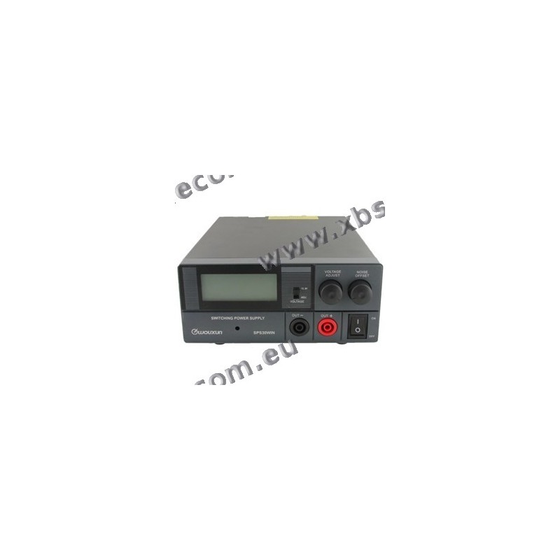 Stabilized power supply, 30A peak, with adjustable voltage from 9 to 15 volts.