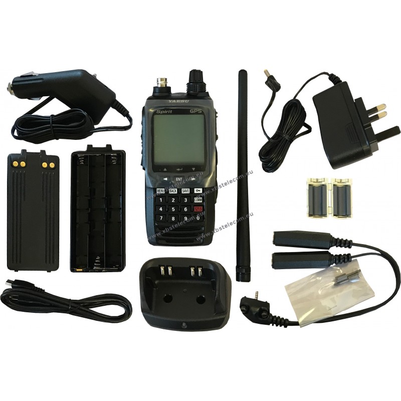 Includes Li-Ion battery pack, charging cradle, AC charger, cigarette lighter charger, antenna, belt clip, headset adapter cable, alkaline battery tray, USB cable.