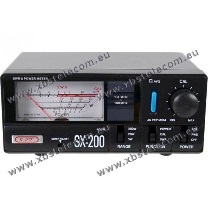 The K-PO SX-200 measures forward and reflected power and VSWR. Compact size makes meter useful for testing both base and mobile installations.
