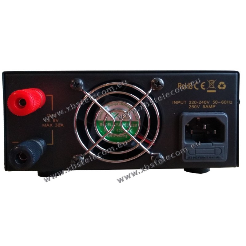 The COMTRAK PS-30 F is equipped with a circuit low ripple that provides a maximum current of 30 A (standard 25A).