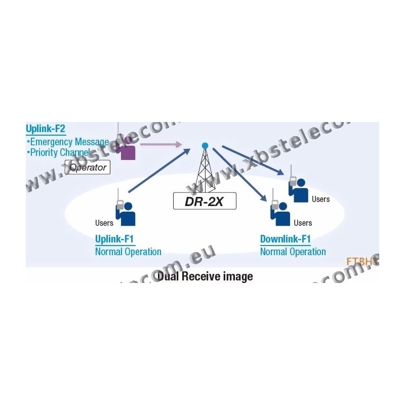 La combinaison unique de récepteur, émetteur et du contrôleur dans le DR-2X / DR-2XE permet à l'opérateur du relais d'assigner jusqu'à deux paires de fréquences par répéteur.