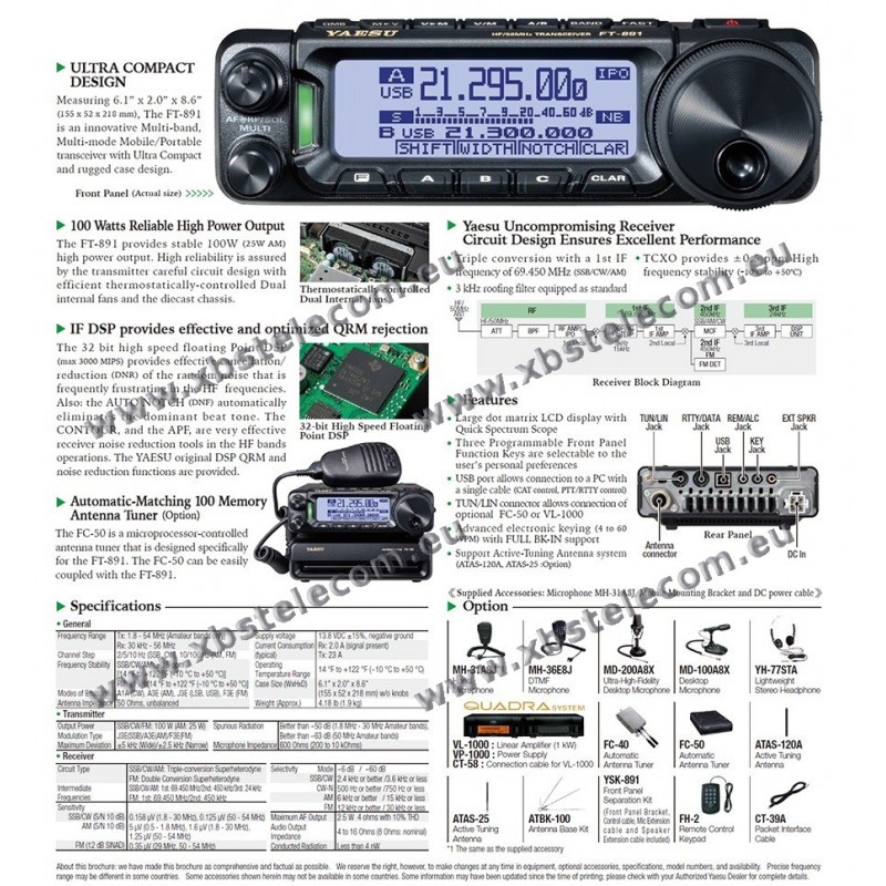 TX:1.8 to 54 MHz (Bandes amateurs uniquement) RX: 30kHz - 56 MHz |