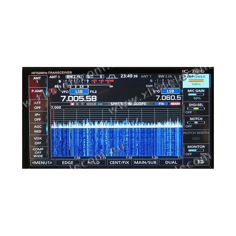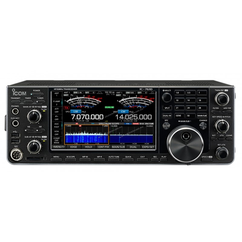 lors de la réception d'un signal. L'IC-7610 offre une double réception, sur des bandes différentes, de même que les oscilloscopes à haute résolution et à haute résolution. Qu'il s'agisse de regarder une ouverture de groupe, de travailler sur une division DX rare ou de rechercher un multiplicateur, la possibilité de regarder chaque récepteur séparément permet à l'opérateur de se concentrer sur un faible signal. Les oscilloscopes offrent des performances de pointe en termes de résolution, de vitesse de balayage et de plage dynamique de 100 dB. Pour naviguer plus facilement dans le groupe, connectez une souris PC au port USB pour effectuer un réglage ponctuel et par clic des récepteurs.