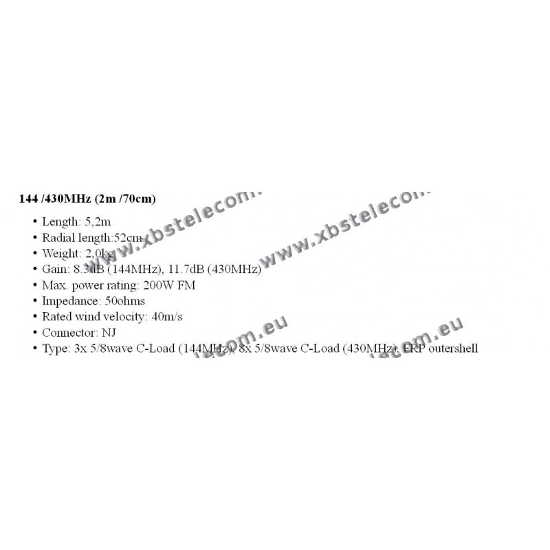 Gain : VHF = 8,3 dBi / UHF = 11,7 dBi
