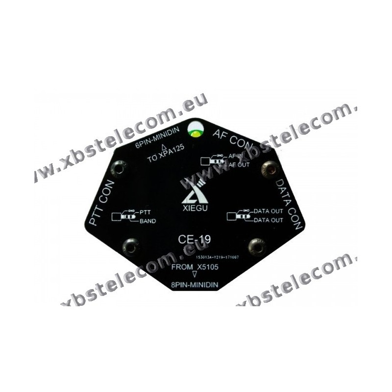 Qualsiasi hardware di terze parti che ha bisogno di un ingresso PTT può essere collegato all'uscita PTT CE-19. Un relè a bordo si separa e un amplificatore protegge il tuo ricetrasmettitore X5105.