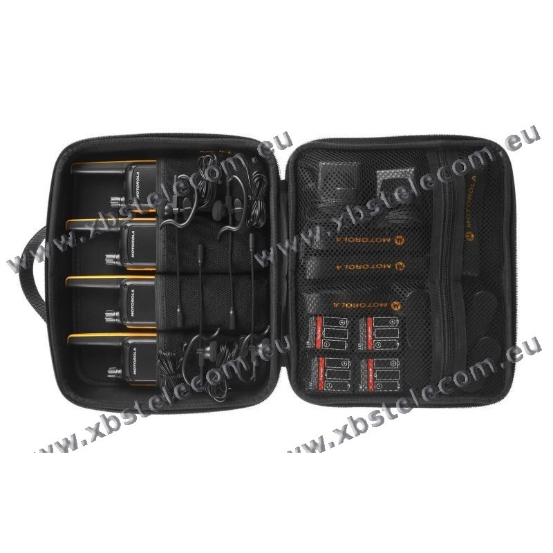 4 walkie-talkie, 4 clip per cintura, 2 caricatori di rete con 2 prese micro USB, 4 batterie ricaricabili NiMH, 4 cordini, 4 auricolari, manuale di istruzioni, custodia per il trasporto, adesivi di personalizzazione (32 pezzi)